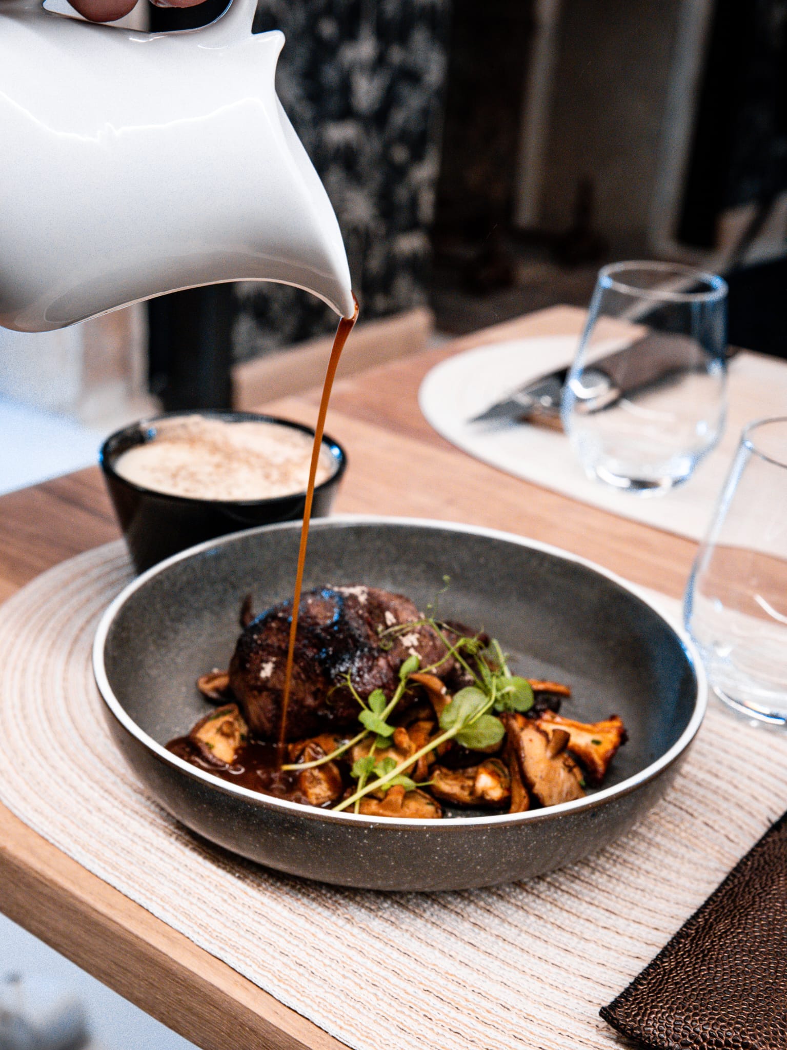 Découvrez notre cuisine bistronomique, alliant tradition et modernité. Dans un cadre chaleureux, savourez des plats élaborés avec des produits locaux, frais et de saison, sublimés par le talent de nos chefs Louise Beurtheret et Julien Perretto. Des plats traditionnels et savoureux, préparés avec soin et amour, évoquant les repas partagés en famille autour de la table. Une véritable invitation à retrouver les plaisirs simples de la gastronomie familiale.